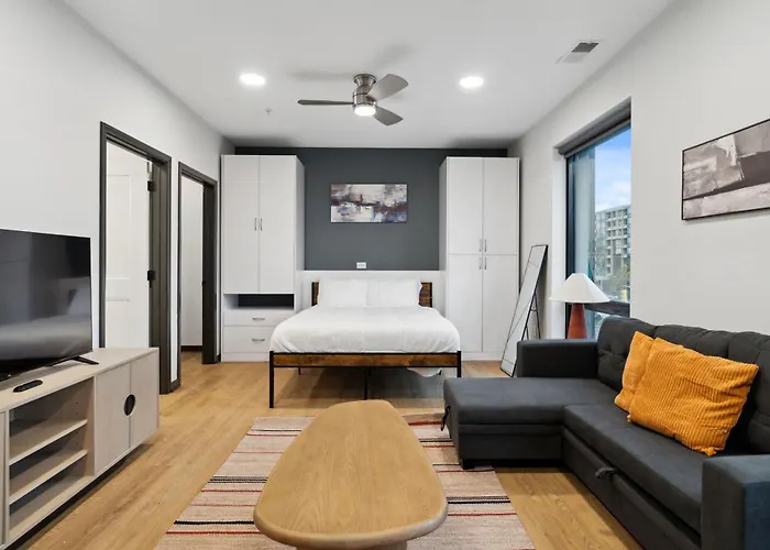 Descubre Cozysuites Mass With Parking Lounge & Roof Deck #25, un espacio perfecto para relajarte y disfrutar de tu estancia en Indianápolis.